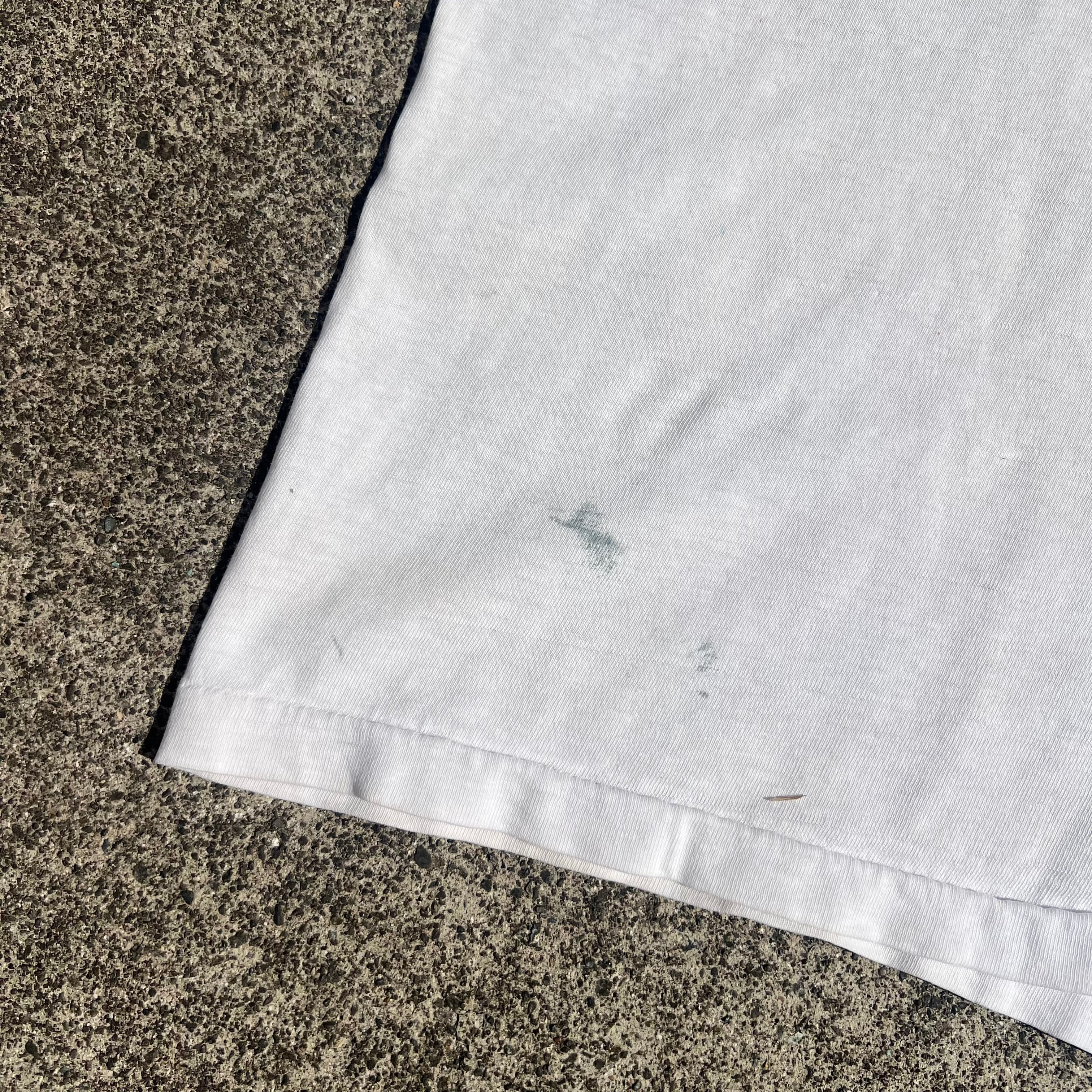 少々のダメージや染みがありますが、リンガーのやれ感と染み込みプリントの雰囲気がとても良い
